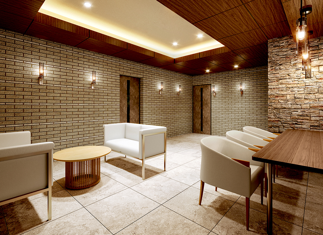 白いインテリア、壁面の煌びやかなライティングがゴージャスな雰囲気を演出します。